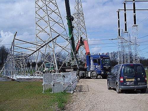 Die ersten drei Masten wurden im Frühsommer geliefert und errichtet, doch auf Grund der Umbauarbeiten im Umspannwerk konnten die drei übrigen Masten erst im Herbst montiert werden.