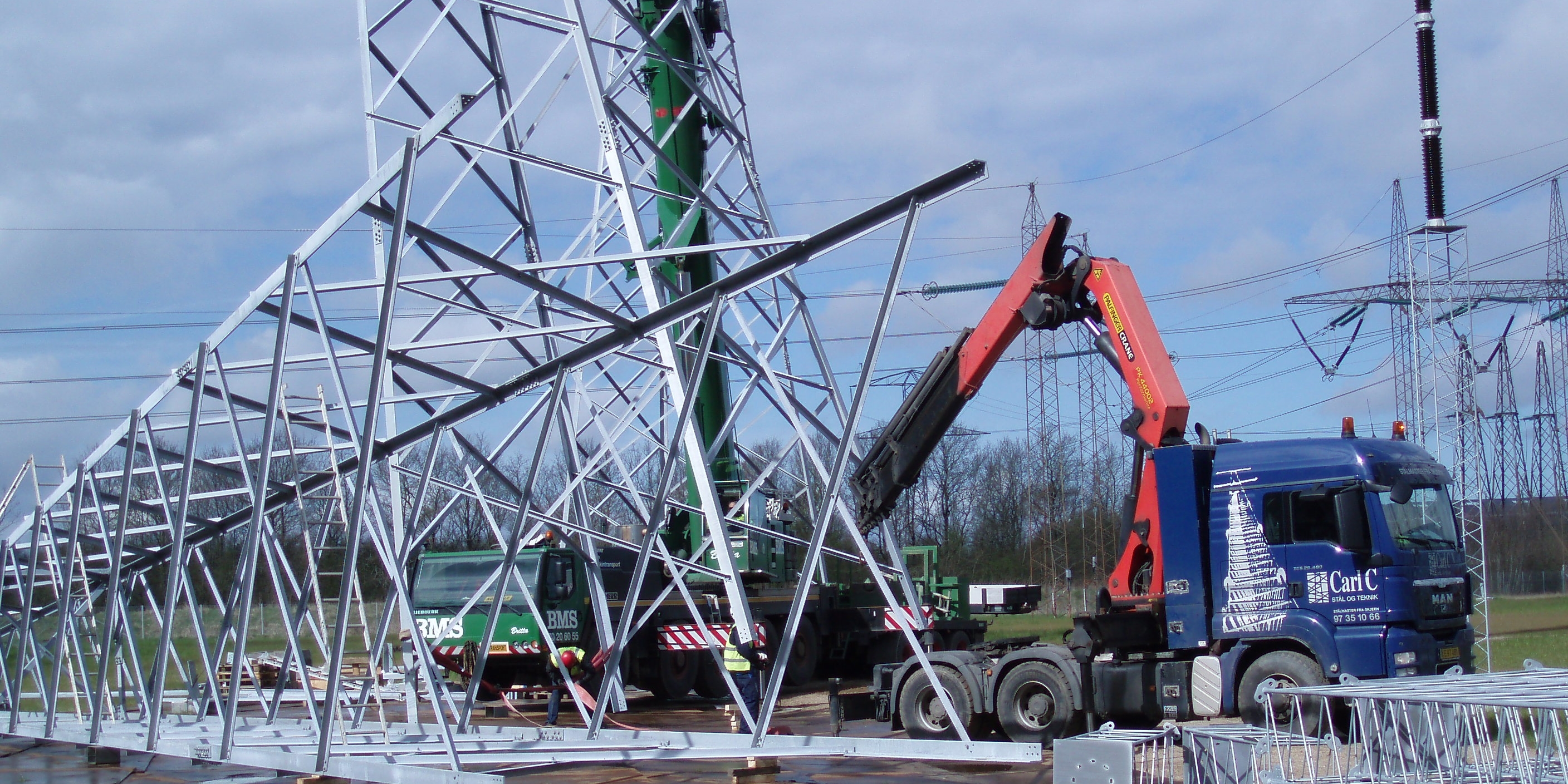 Carl C.s Auftrag bestand in der Lieferung und Montage von 6 Stück 400-kV-Abspannmasten Höhe ca. 25 m, bei denen der Mastaufbau aus Winkelstahl mit sowohl verschweißten als auch losen Gittern ausgeführt wurde.