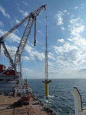 Die Masten wurden in Eemhaven, Holland, zusammengebaut und von dort zur Installation verschifft. Für die Installation wurde der Schwimmkran „Oleg Strashnov“ von Seaway Heavy Lifting verwendet. Im Gegensatz zu vielen anderen handelt es sich bei diesem nicht um einen Jack-up-Kran. Das bedeutete, dass für eine sichere und korrekte Installation des Mastes wegen der von den Wellen verursachten Bewegungen ganz besondere Umsicht geboten war. Es war deshalb notwendig, einige Sektionen noch in der Produktionsphase umzugestalten. Aufgrund dieser Installationspraxis befindet sich am unteren Ende des Mastes eine Trichterkonstruktion, mit der sich der Mast auf der Plattform an Ort und Stelle führen ließ.
