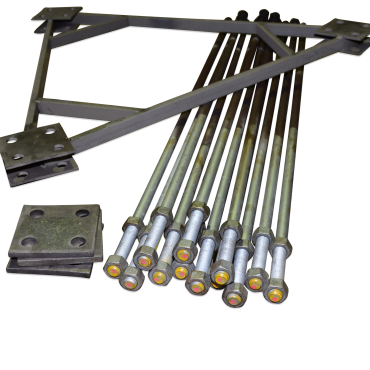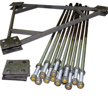 FB SEK304-00Der Staz enthält feuerverzinkte Fundamentschrauben sowie Einbettungsplatten und Muttern. Zusätzlich wird eine Gussschablone zur Befestigung der Schrauben während der Gussarbeiten und ein Fundamentvorschlag für normale Bodenbedingungen bereitgestellt.