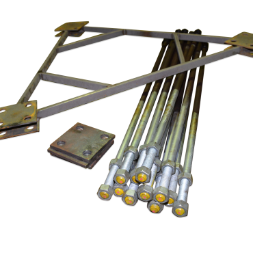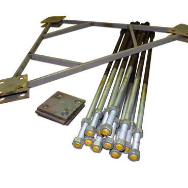 FB SEK305-00Der Staz enthält feuerverzinkte Fundamentschrauben sowie Einbettungsplatten und Muttern. Zusätzlich wird eine Gussschablone zur Befestigung der Schrauben während der Gussarbeiten und ein Fundamentvorschlag für normale Bodenbedingungen bereitgestellt.