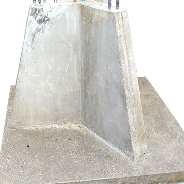 Betonfundament mit eingebetteten Fundamentschrauben zur Verwendung in dreieckigen Standardprofilen.