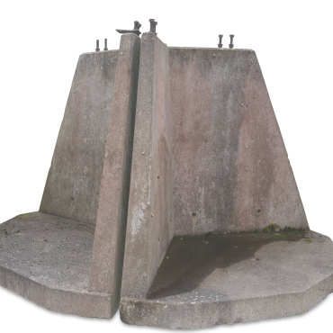 Betonfundament mit eingebetteten Fundamentschrauben zur Verwendung in dreieckigen Standardprofilen.
